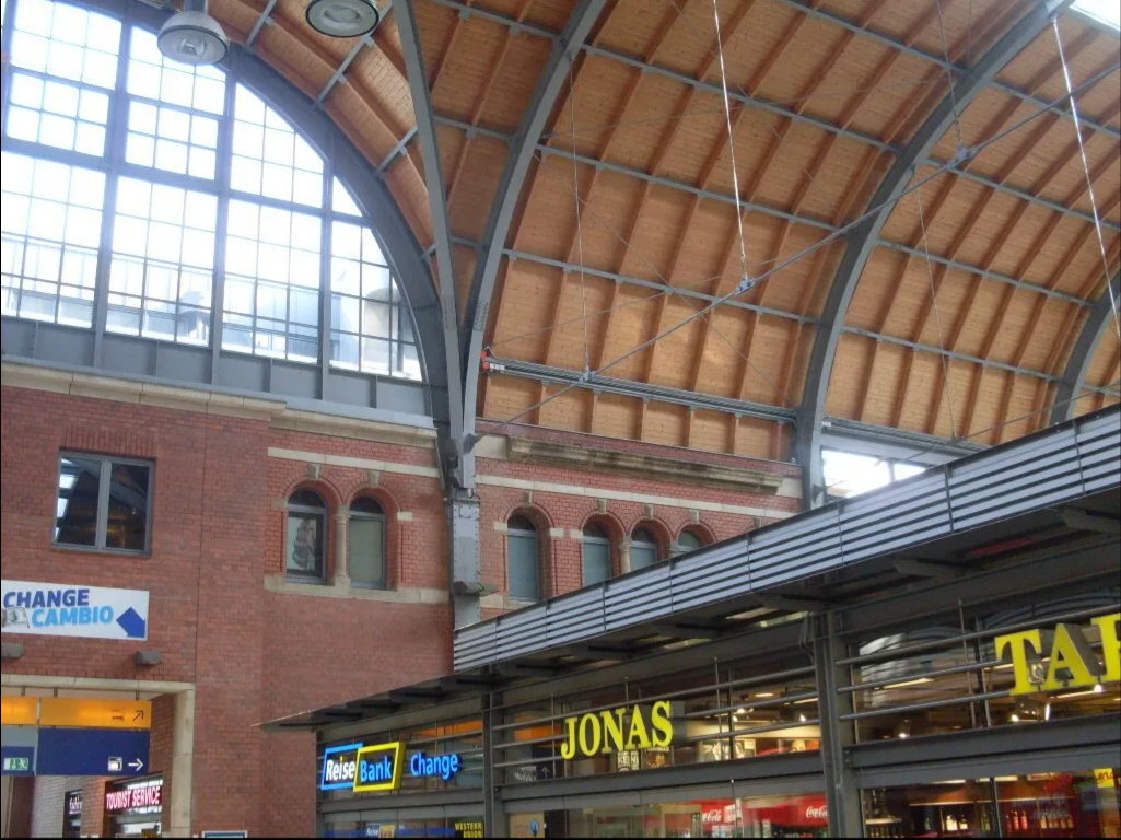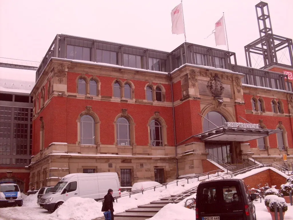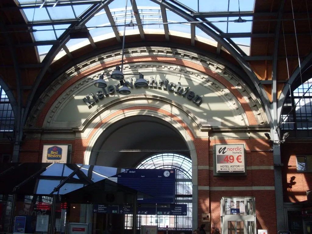 Bahnhof in Kiel aus den 30 er Jahren im 2. Weltkrieg stark beschädigt und heute ist nur noch ein Teil der schönen Fassade zu sehen, unten in den Bildern kann man sehen wie der Bahnhof heute aussieht.