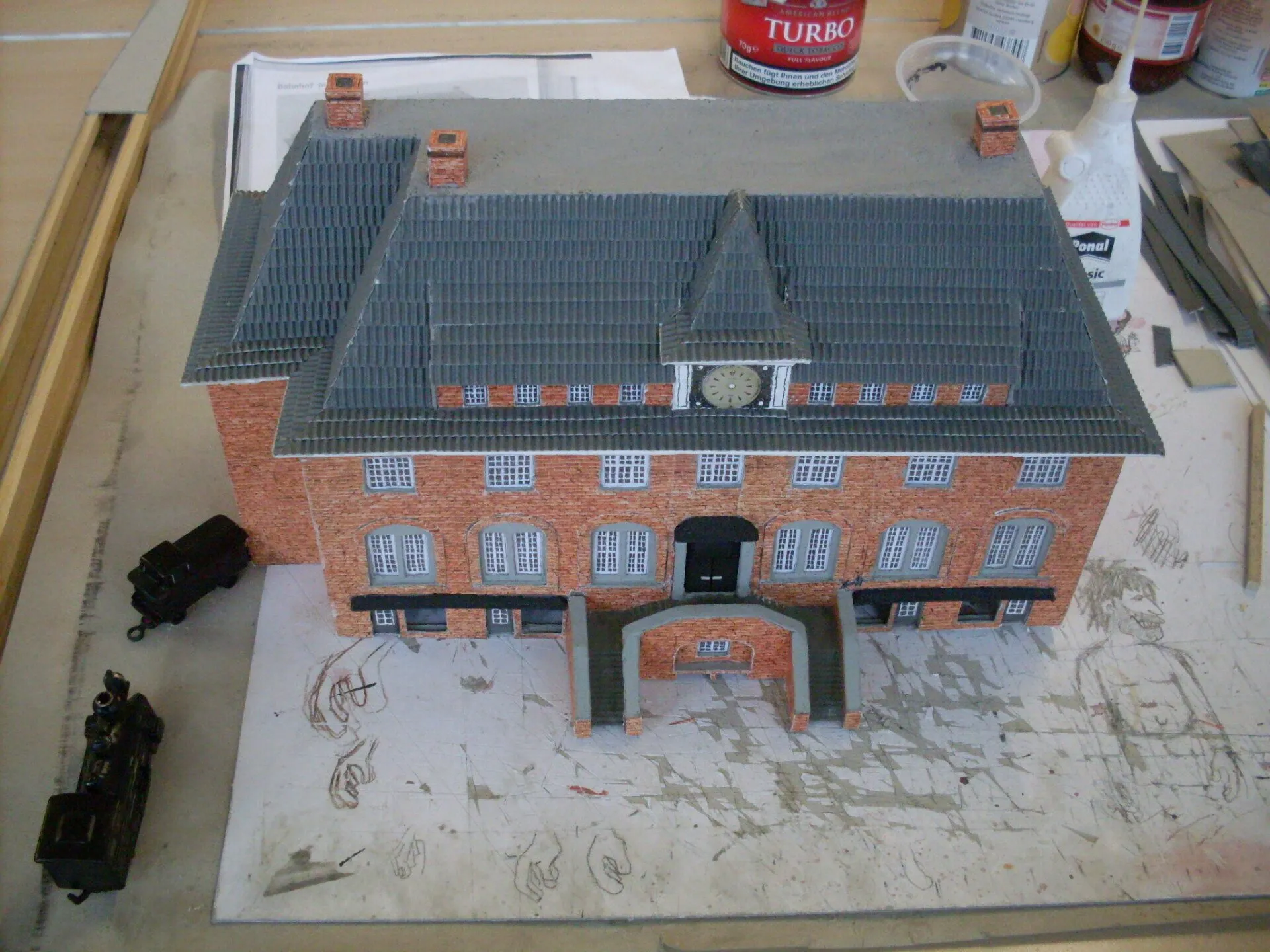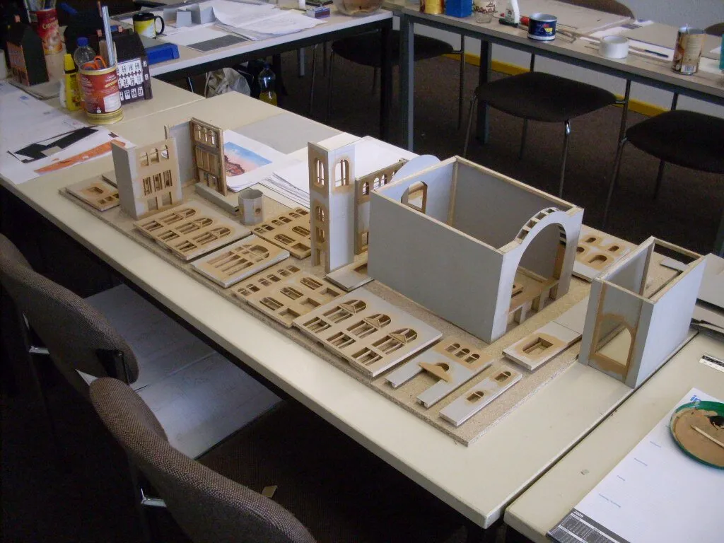 Man kann erkennen wie anhand der Bilder das Modell vom Bahnhof erstellt worden ist.