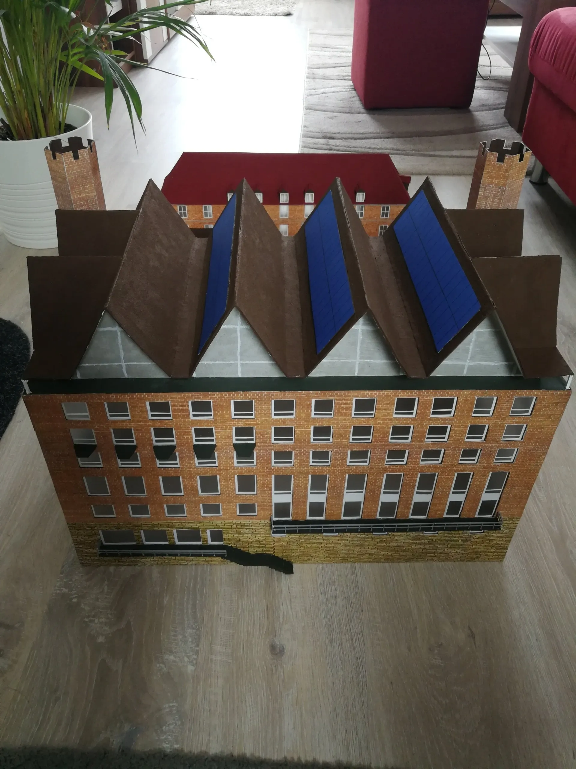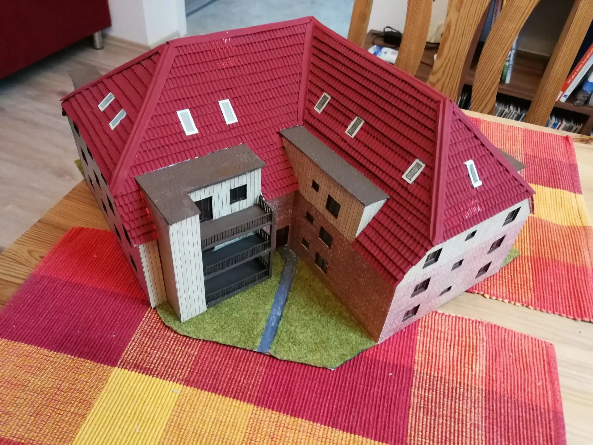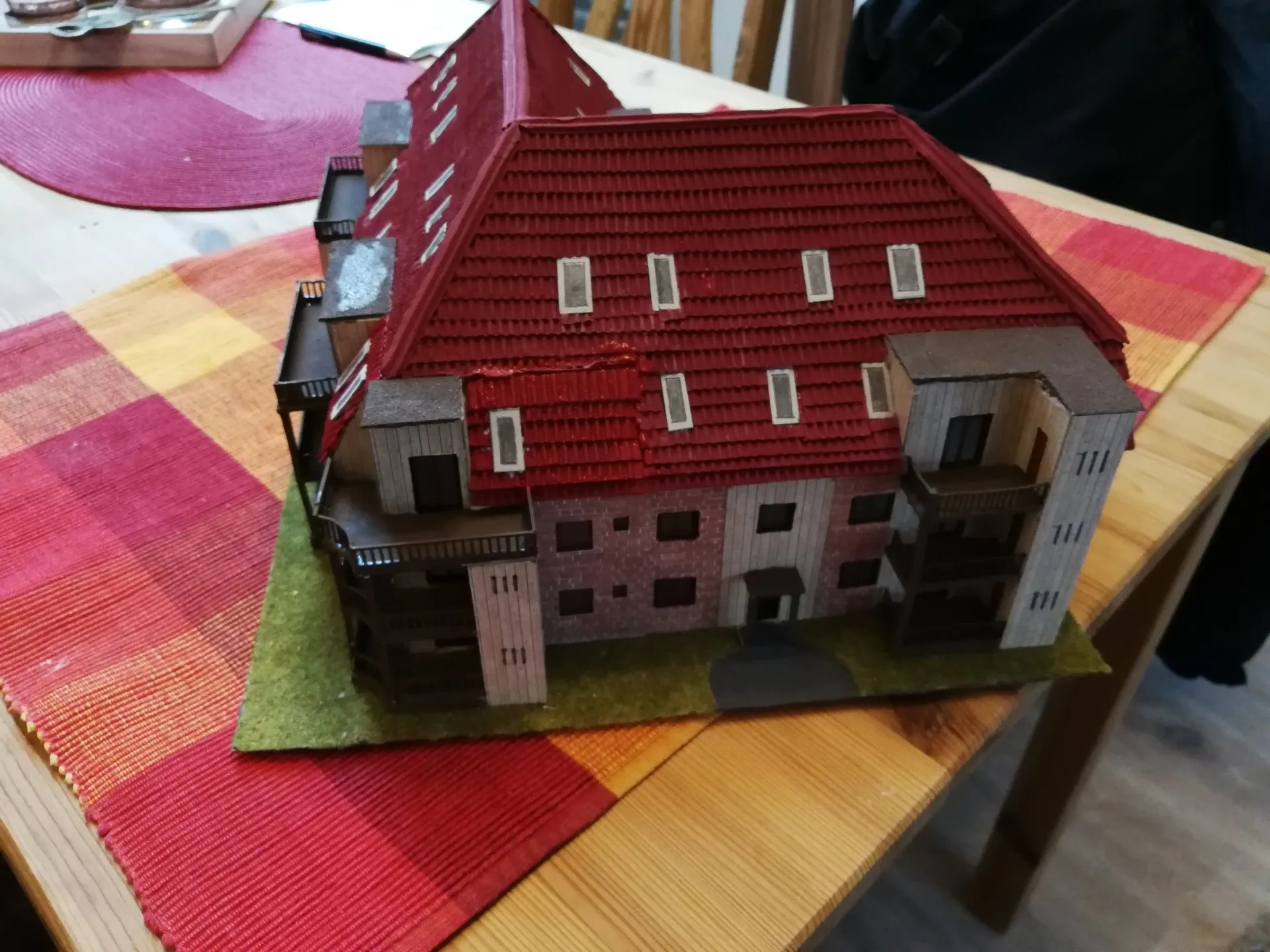 Die Häusermodelle werden von Hand konstruiert und gebaut, im inneren sind die Gebäude mit Holzleisten verstärkt zur Stabilität. Die anderen Materialen sind Karton, Fotokarton, Mauerplatten und vieles mehr. Von der Konstruktion bis zur Fertigstellung vergeht einige Zeit je nach Aufwand.