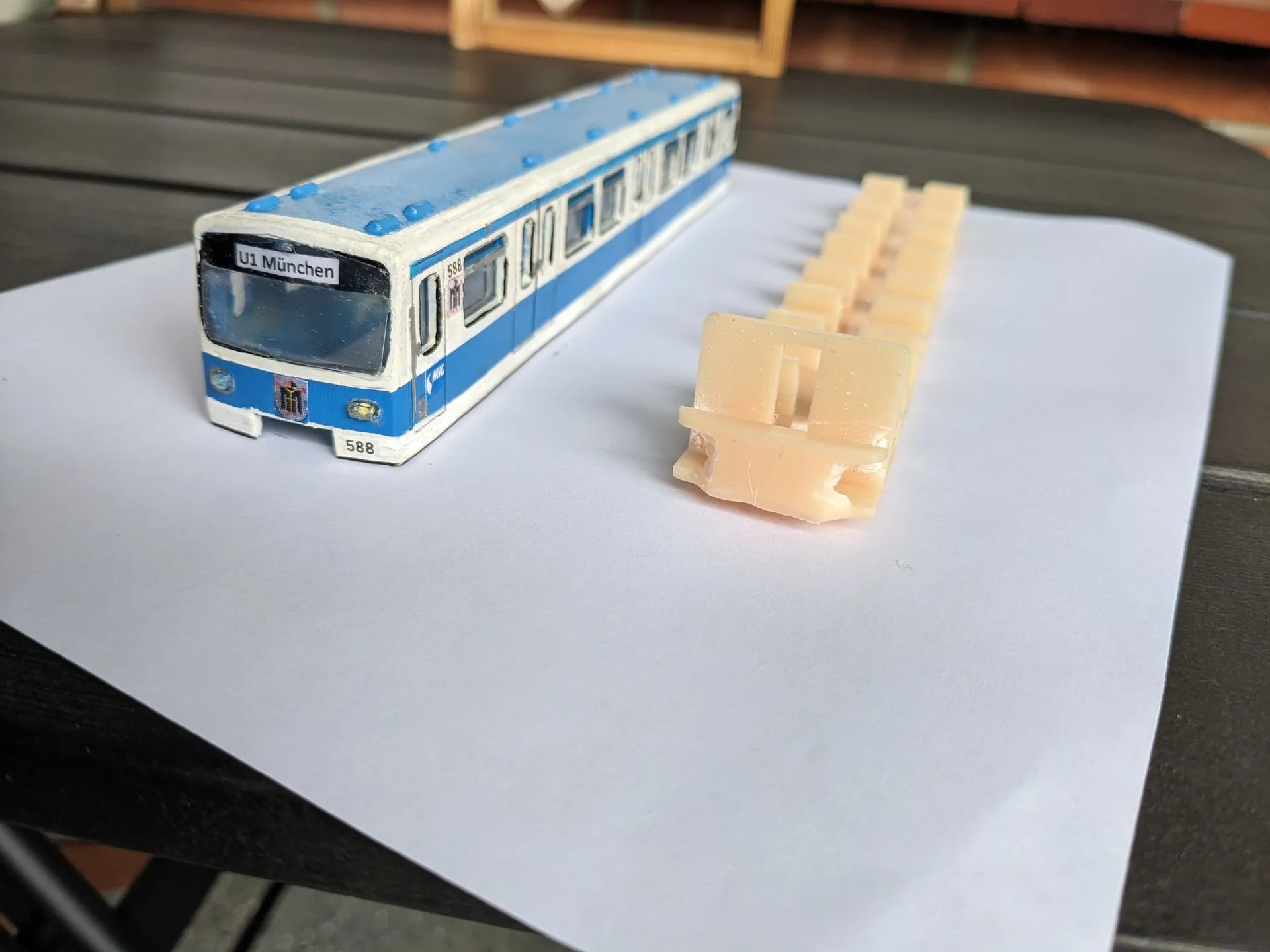 Münchner/Nürnberger U-Bahn DT1/Dt2 als Standmodell in HO in N/TT