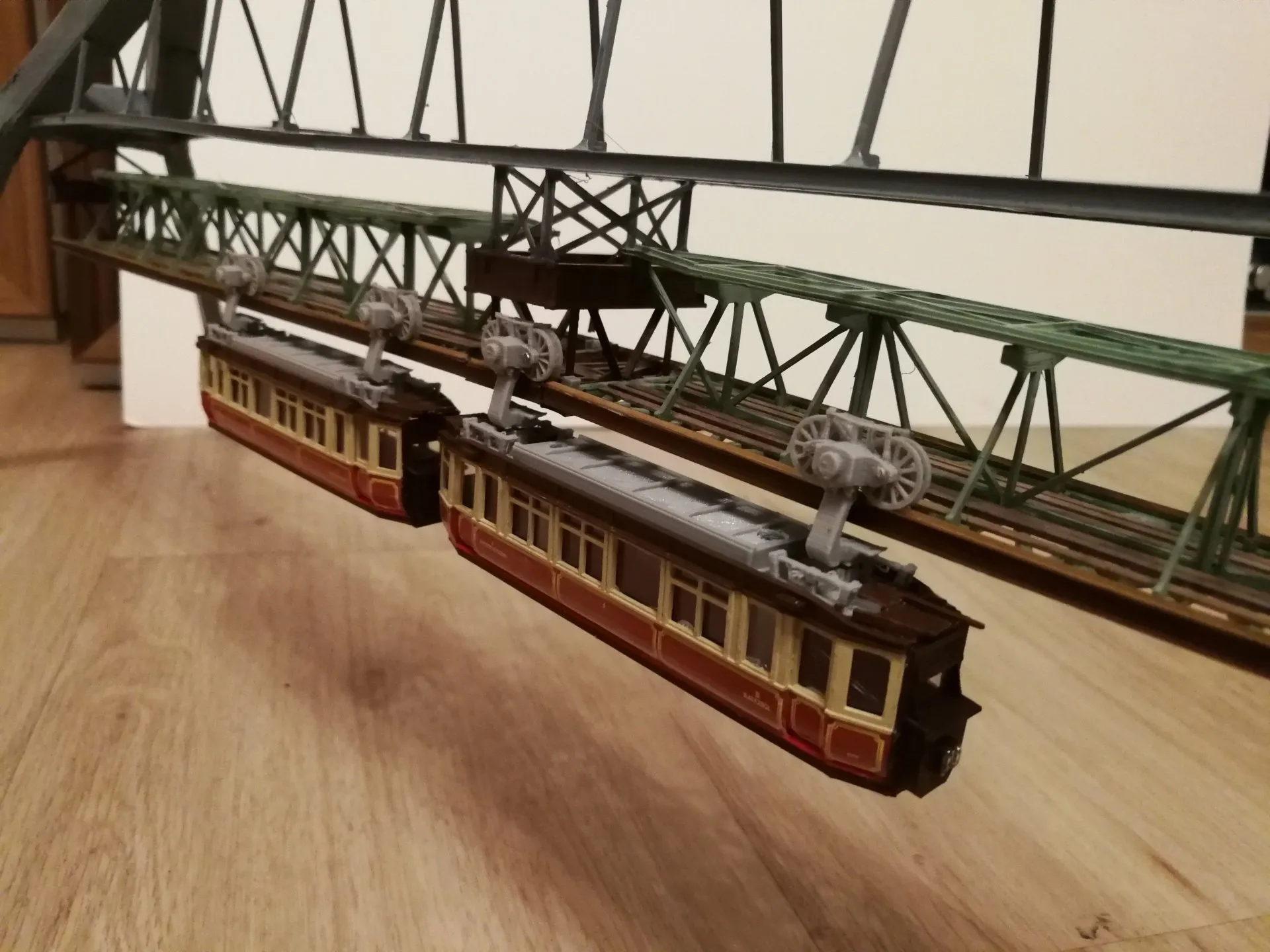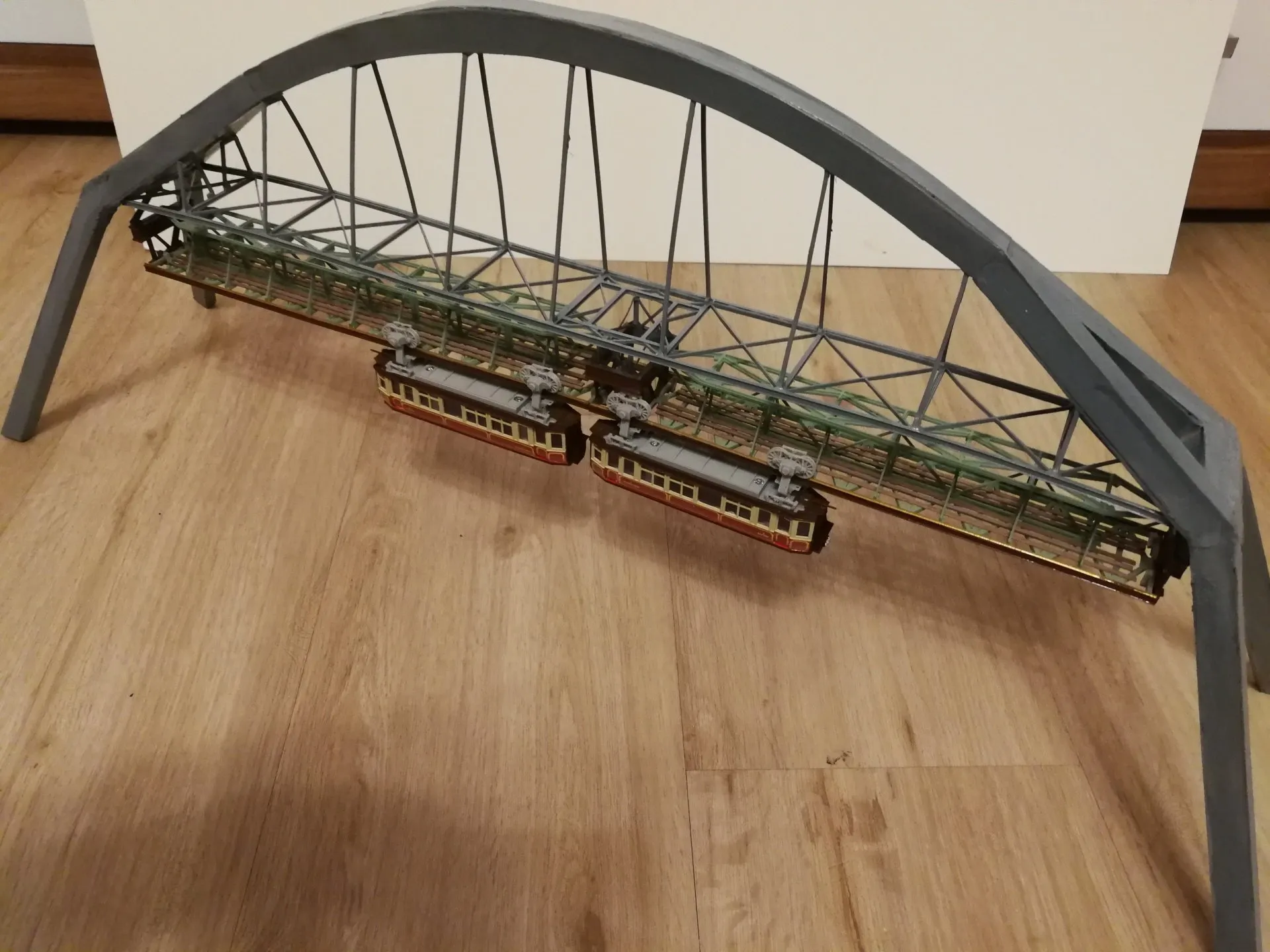 Die Schwebebahnbrücke ist als Modell Serienreif im Maßstab HO über der Straße zwischen den Haltestellen Ohligsmühle und Robert-Daum Platz. Die Brücke ist ca. 880 mm lang, ca. 360 mm hoch und ca. 235 mm breit.