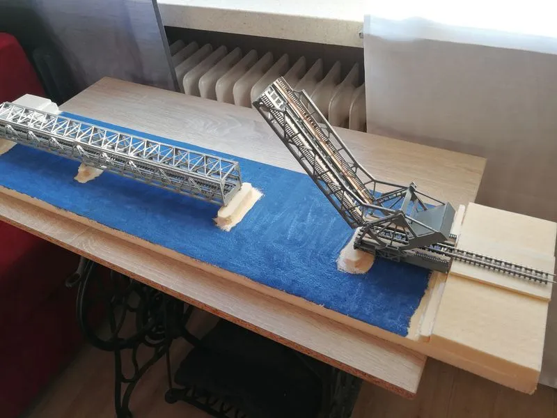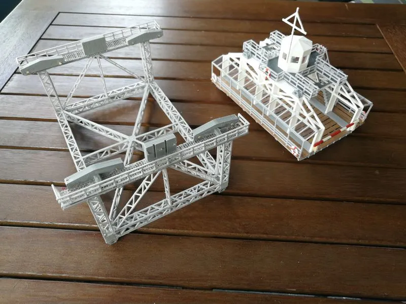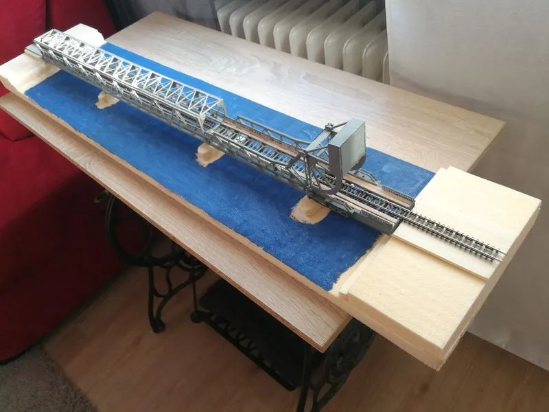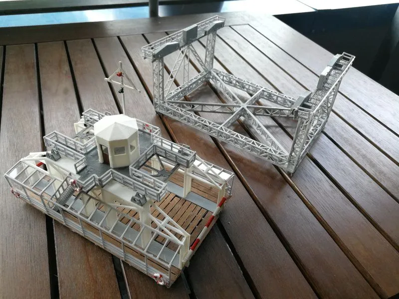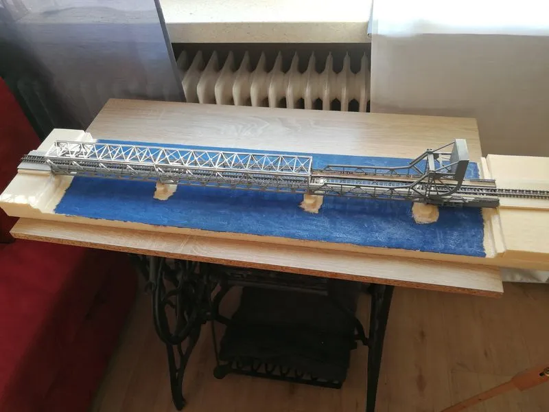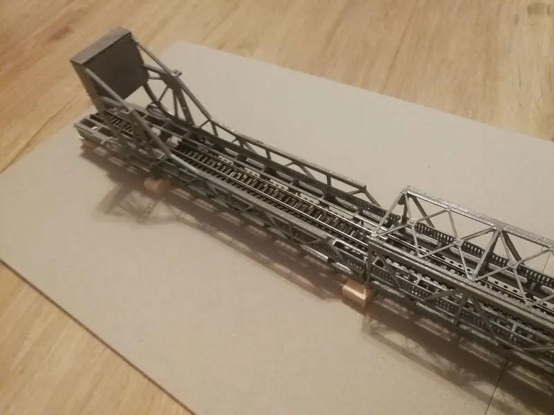 Die Konstruktion der 42 Meter hohen Brücke ohne die Schwebebfähre.Die Brücke in HO ist beim MEC in Rendsburg zu sehen und nun wieder komplett mit der Schwebefähre.Klappbrücke Lindaunis an der Schlei in Spur N, es ist der erste Entwurf. Die Brücke kann in HO angefertigt werden und wird noch erweitert. Auf Wunsch eines Kunden aus Dänemark angefertigt. Die Klappbrücke mit Haus und Brücke in Spur N hat eine Länge von ca. 78cm, breite und höhe von 5 cm.