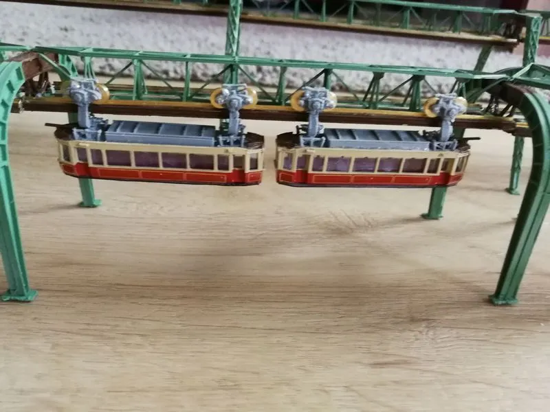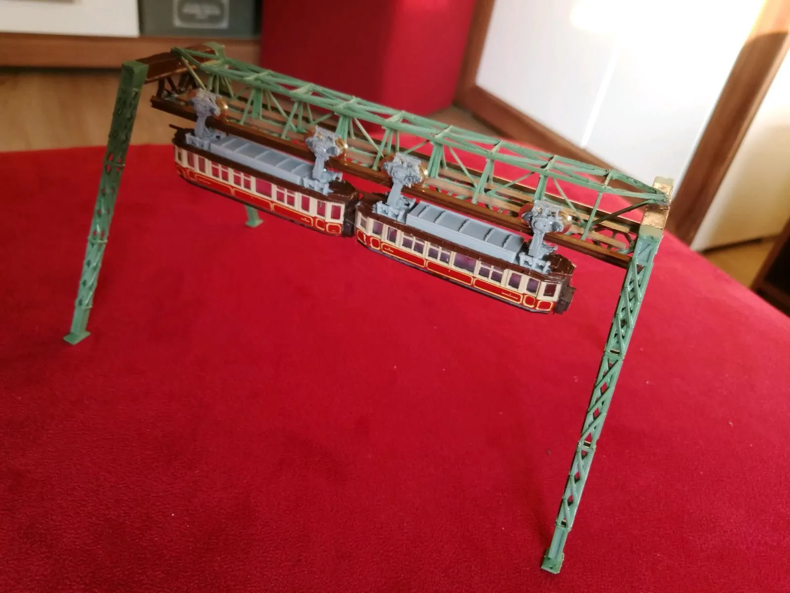 Die Schwebebahn in 1:120 und 1:160 sind Serienreif, der GTW72 als Modell. Die Modelle und Stützen werden aus Resin gedruckt.